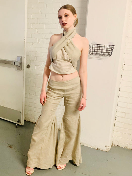 Crisscross Handmade 100% linen cropped top and 100% Linen drop waist pants.